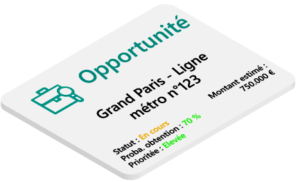 Consultez, créez ou modifiez l’ensemble des opportunités, offres, affaires et projets associés à une société.